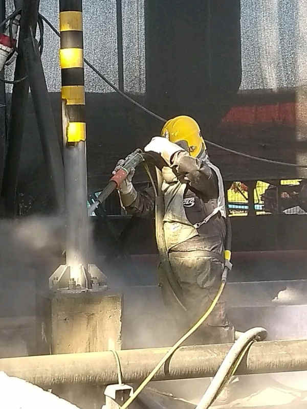 Los trabajadores que participan en Sand Blasting (chorreado de arena) reciben una fuerte exposición a la sílice libre, los estudios del gobierno muestran que incluso la exposición a corto plazo a grandes cantidades de sílice libre puede causar silicosis aguda, una inhabilitación, enfermedad pulmonar irreversible y a veces incluso mortal.
