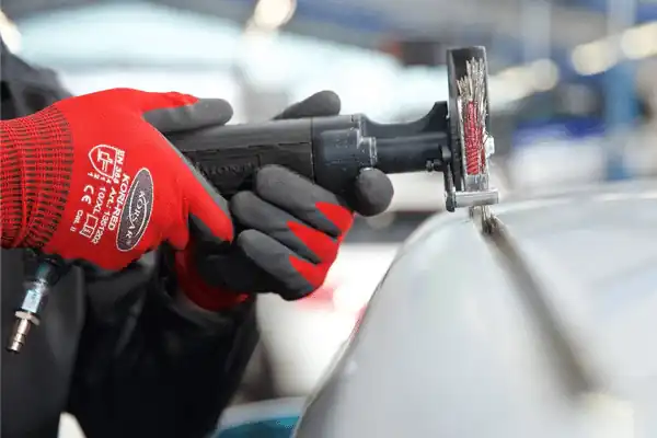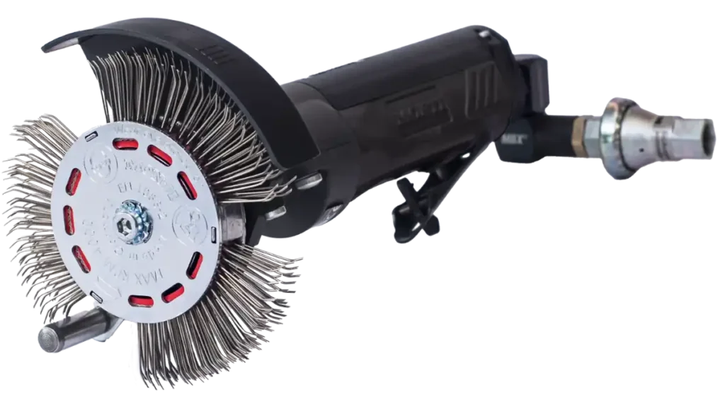 El Bristle Blaster® Axial, equipado con su Barra Aceleradora patentada, está diseñado para eliminar corrosión en zonas complejas como jambas de puertas, uniones de techos o arcos de ruedas, creando una superficie granallada para una adhesión superior.
