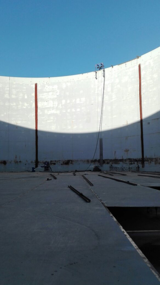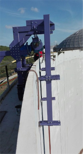 Los mismos elementos de granallado horizontal + winche (hoist) y marco de izamiento (sobre tapa fija o semi-cónica, sobre plataforma de tapa flotante, marco tipo “C” para escaleras  y anillos, o marco especial)