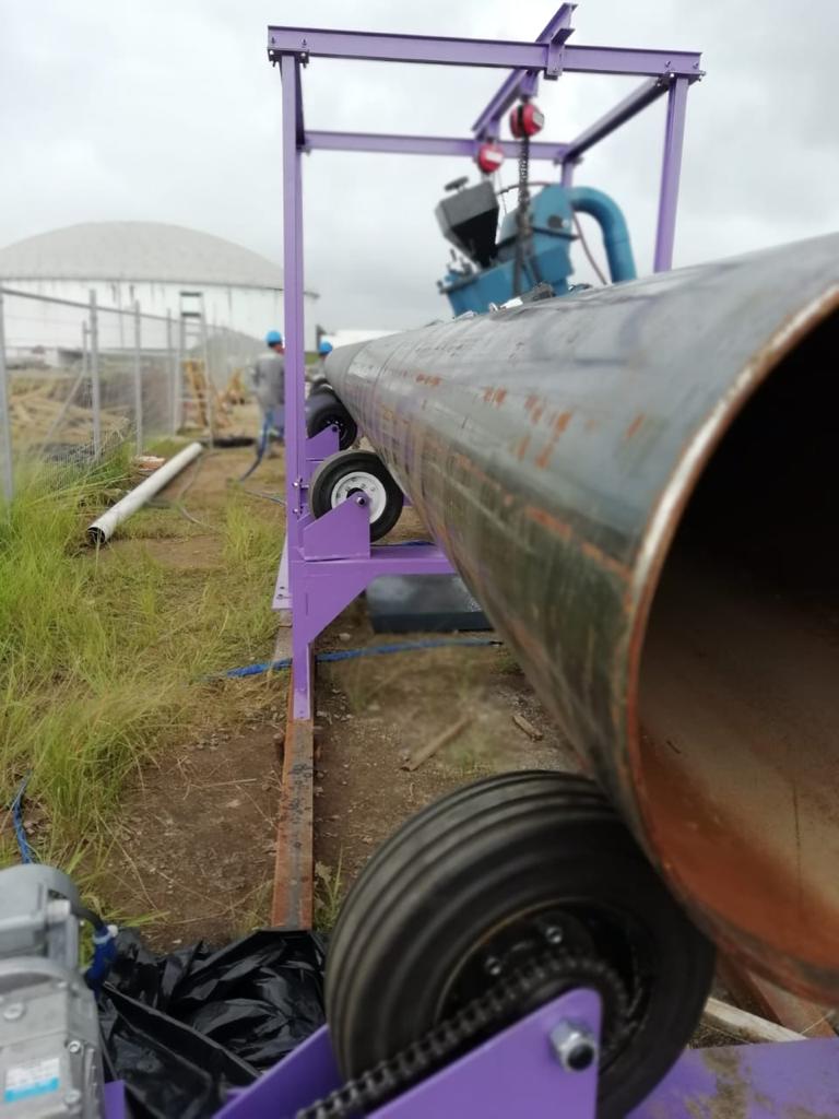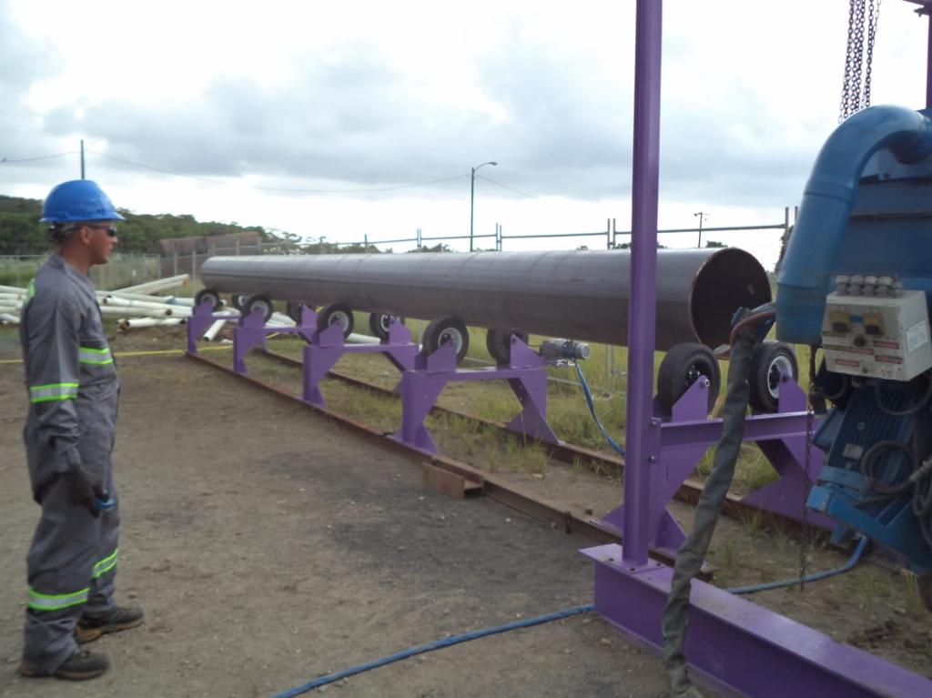 Para granallado de tubos de pequeño diámetro se suministra una caja especial. Para granallado interno (tuberías de diámetro superior a 80” (1500mm), se utiliza el mismo equipo de granallado horizontal + sistema de rotación tubos.