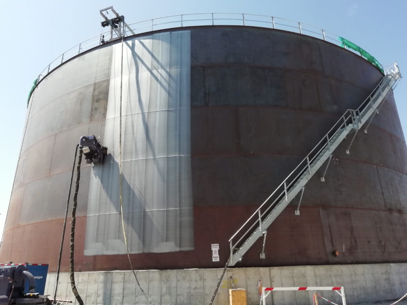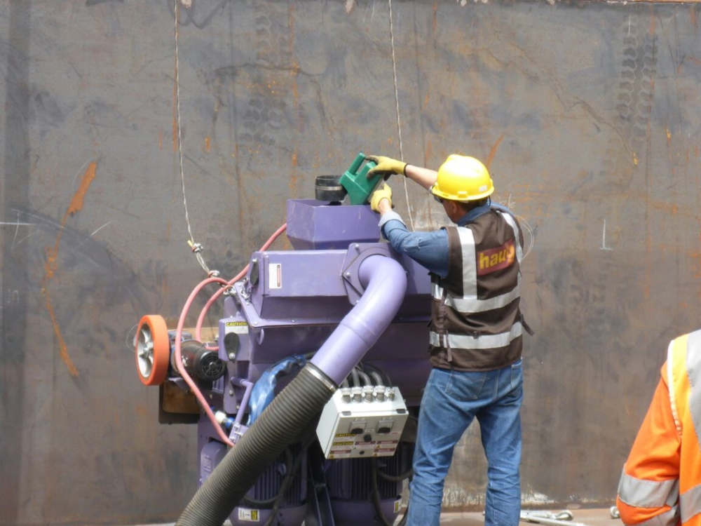 Es la única máquina que se puede utilizar en proyectos de limpieza y preparación de superficies de tubería, láminas, paredes, techos y fondos de tanques de almacenamiento, grandes tanques de agua, torres de viento, limpieza de grandes superficies de barcos, paredes y pisos de concreto; con la inversión en una sola máquina.