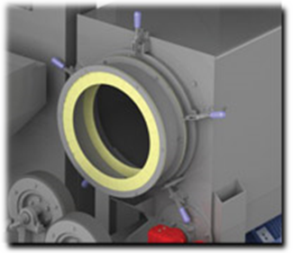 Construida en estructura soldado de acero al Manganeso (12 – 14%) sobre las partes más expuestas al abrasivo. En su parte lateral, el equipo cuenta con un sistema de sellado que permite la entrada / salida de tubos y evita la fuga de abrasivo. La cámara de trabajo adicionalmente funciona como interconexión de los demás componentes de la máquina.