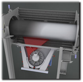 Desarrollado por CMV es de fácil operación y prácticamente libre de mantenimiento, el purificador recibe el abrasivo del elevador de cangilones contaminado con impurezas. Este cuenta con un tamiz rotativo que elimina las impurezas más grandes y un sistema que regula el flujo a través de una puerta ubicada en la parte superior, distribuyendo de forma uniforme el abrasivo sobre los deflectores del sistema de lavado por aire. La corriente de aire es producida por el sistema de extracción con flujo ajustable. Esta corriente pasa a través de las aletas del sistema de lavado llevando consigo polvo, otros residuos y el abrasivo fino que no es apto para su uso. El abrasivo libre de impurezas será conducido al silo conectado en la parte inferior del purificador.