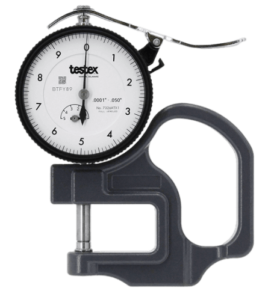 Los medidores de espesor con dial Testex miden la rugosidad de las superficies limpiadas con chorro de abrasivo. Son los únicos medidores diseñados específicamente para su uso con cinta de réplica que tienen la precisión correcta, la fuerza de cierre, las dimensiones del yunque/punto de contacto y las especificaciones de paralelismo necesarias para una medición precisa de la cinta réplica.
