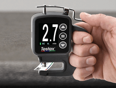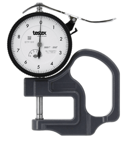 Los medidores de espesor con dial Testex miden la rugosidad de las superficies limpiadas con chorro de abrasivo. Son los únicos medidores diseñados específicamente para su uso con cinta de réplica que tienen la precisión correcta, la fuerza de cierre, las dimensiones del yunque/punto de contacto y las especificaciones de paralelismo necesarias para una medición precisa de la cinta réplica.