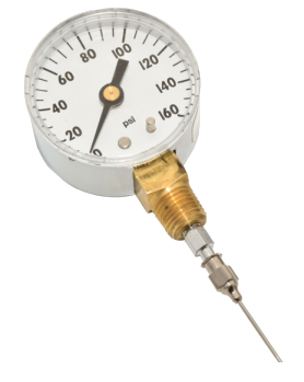 El manómetro de aguja está diseñado para medir la presión de aire en la manguera de chorro de granallado y la manguera de aire, el uso apropiado de este medidor medirá las caídas de presión que son responsables de la reducción de las tasas de producción y el consumo de abrasivo y los sistemas de limpieza de abrasivo y perfil de anclaje inadecuados.