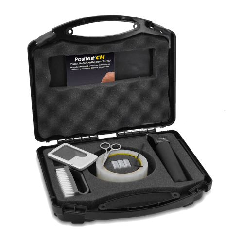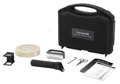 El PosiTest CH desarrollado por Defelsko determina la capacidad de un recubrimiento para resistir la separación de un sustrato cuando se corta un patrón reticular siguiendo las normas ISO 2409 y ASTM D3359.