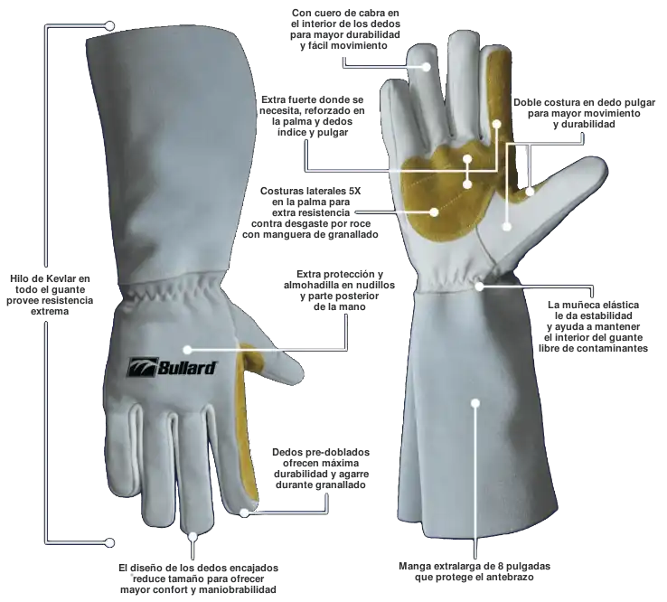 Los guantes Bullard para granallado están diseñados para ofrecer una gran destreza y durabilidad.