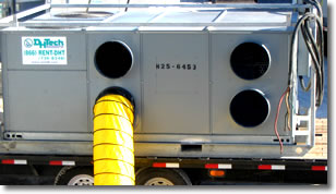 Las unidades de deshumidificación de refrigerante usan refrigerante para enfriar los circuitos por debajo del punto de rocío y, a medida que el aire pasa sobre los circuitos, la humedad se condensa fuera del aire. Este tipo de deshumidificador puede eliminar grandes cantidades de agua del aire en climas cálidos y húmedos y puede usarse para enfriar el interior de tanques, contenedores y recipientes para cumplir con las normas de OSHA.