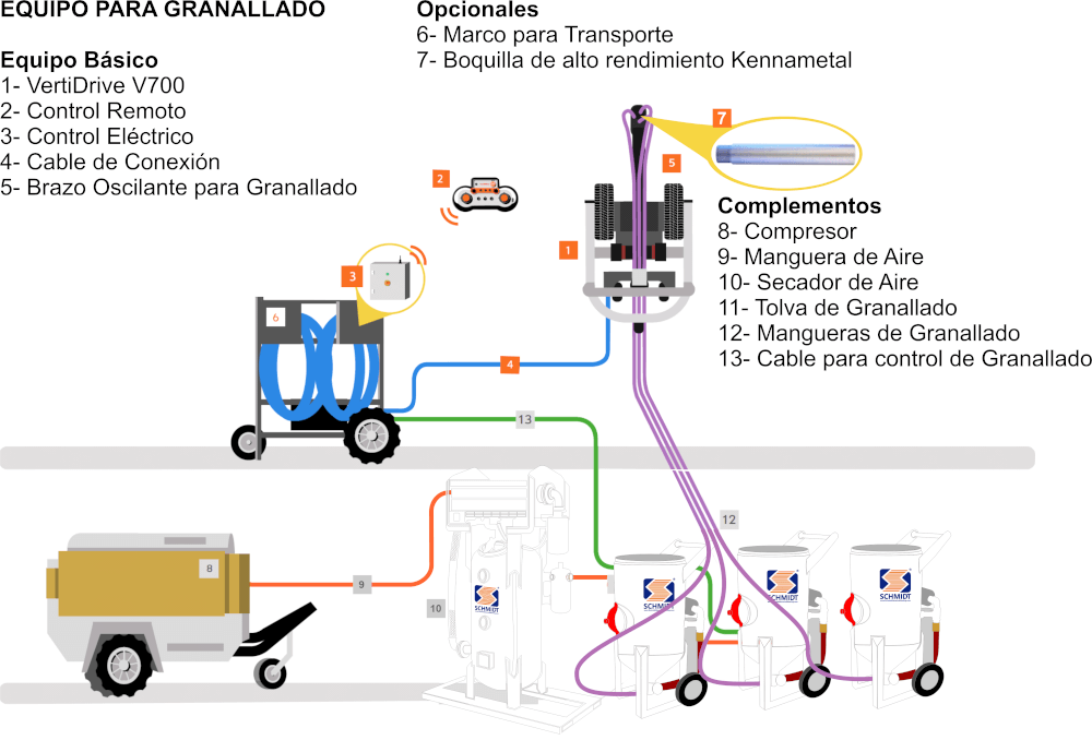 El uso de equipos sofisticados para granallado seco o granallado húmedo fabricados por la empresa Axxiom Schmidt, de la que Blasting Experts es representante exclusivo para Latinoamérica, hacen un excelente complemento con los robots de VertiDrive, que permite la ejecución de proyectos exitosos de preparación de superficies en astilleros para la preparación de superficies de Barcos, esferas y tanques de almacenamiento en estaciones de almacenamiento de petróleo, y otras industrias con grandes superficies metálicas como por ejemplo torres eólicas, plataformas offshore, tuberías, etc.