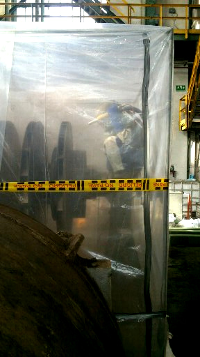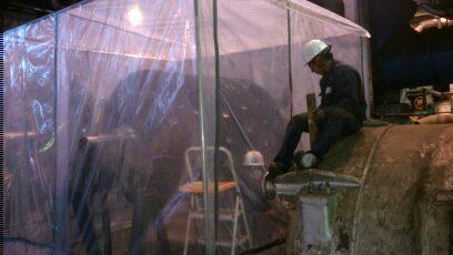 El proceso de granallado tuvo una duración de un día y conto con la participación de dos operarios especializados y un director técnico. Fue necesario cercar el componente en toda su periferia para evitar la fuga de partículas al ambiente.