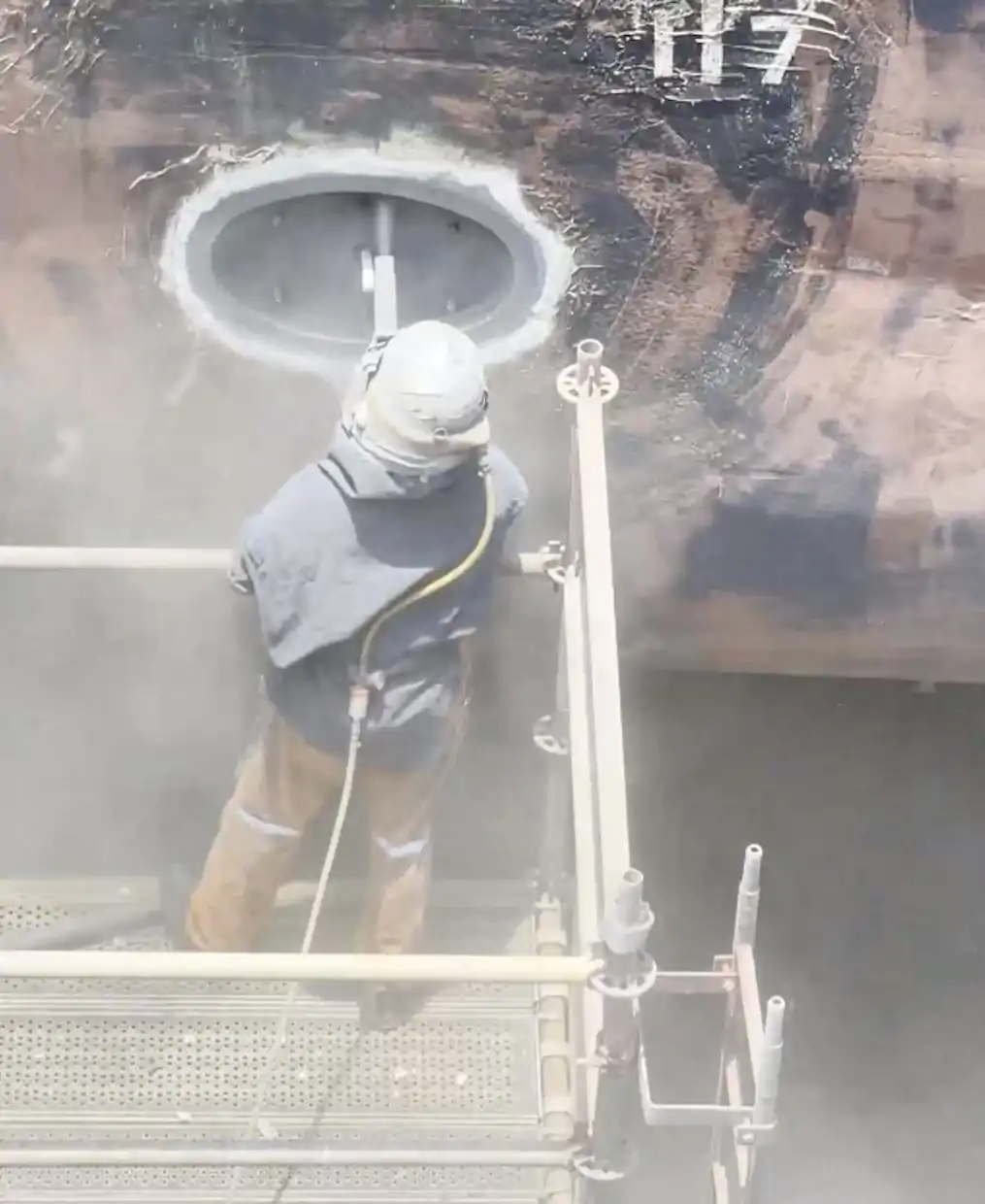 En esta oportunidad realizamos granallado vertical con limpieza tipo Comercial SSPC SP6 (ISO Sa2.0), Metal Casi Blanco SSPC-10 (ISO Sa2-1/2) y Limpieza Metal Blanco SSPC-5 (ISO Sa3.0).