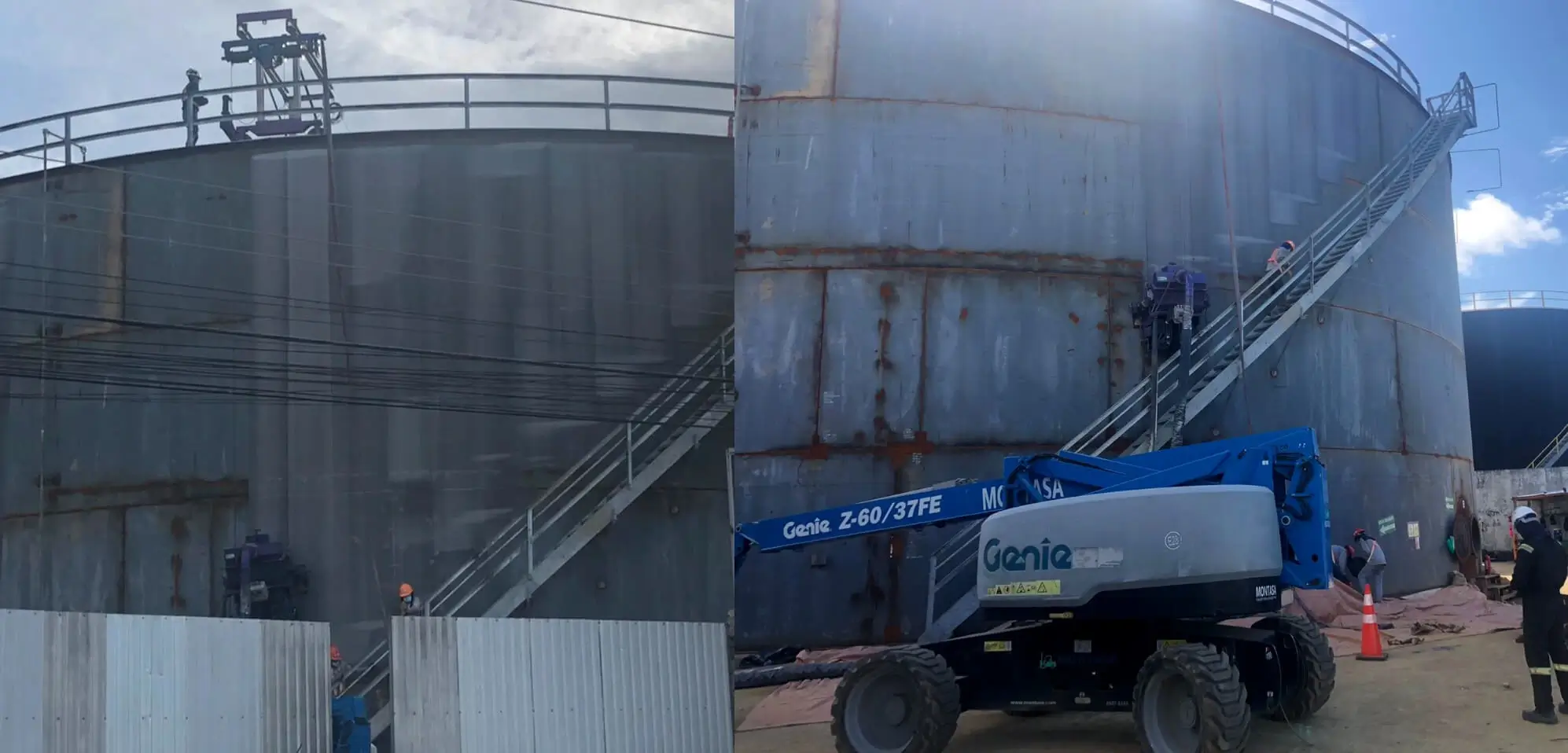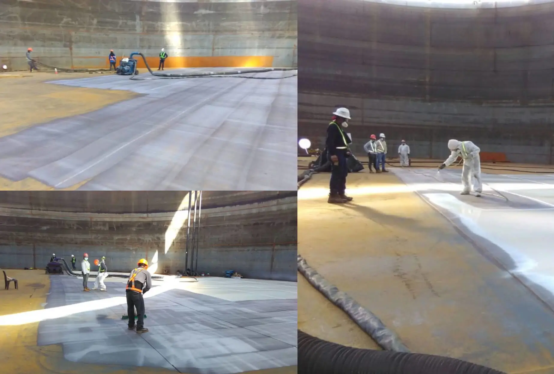 A partir del proceso de granallado se obtuvo una limpieza tipo metal casi blanco (SSPC – SP10 / NACE No. 2) en paredes & techos, y metal blanco (SSPC-SP5 / NACE No.1) en pisos y primer anillo. Más del 85% del área total (aprox. 7.000 m2) se realizó con la tecnología FasterBlaster (única a nivel mundial), que incluye máquina granalladora turbinada automática portátil, colector de polvo, marcos especiales para tanques con techo fijo y flotante (tapa geodésica), sistema de izaje tipo winche y accesorios. Para el proceso de pintura se aplico un sistema tricapa marca Carboline