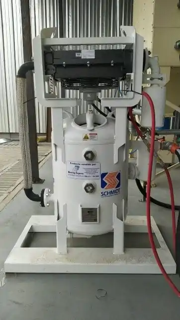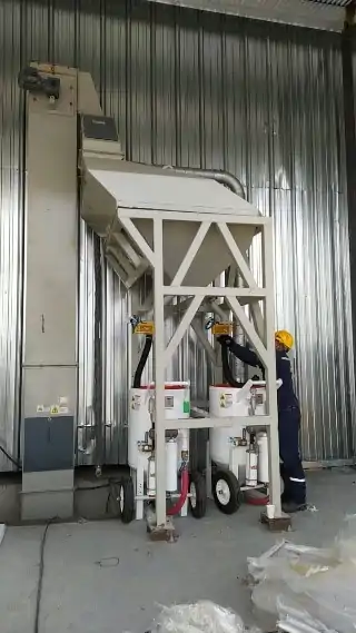 El diseño final fue una cabina cuadrada tipo túnel, de 10m de lado por 5m de altura, con un sistema de recuperación de abrasivo semi-automática por tornillos sinfín en disposición «H» apta para dos operarios en acción simultanea.