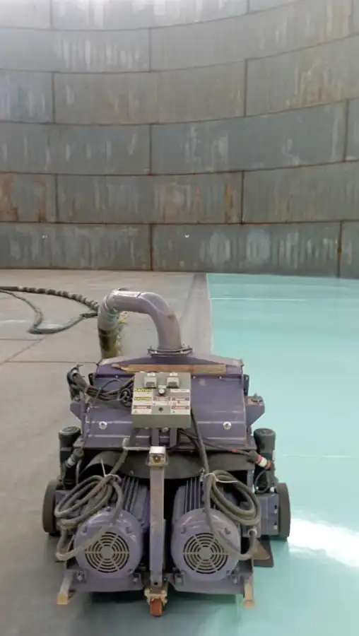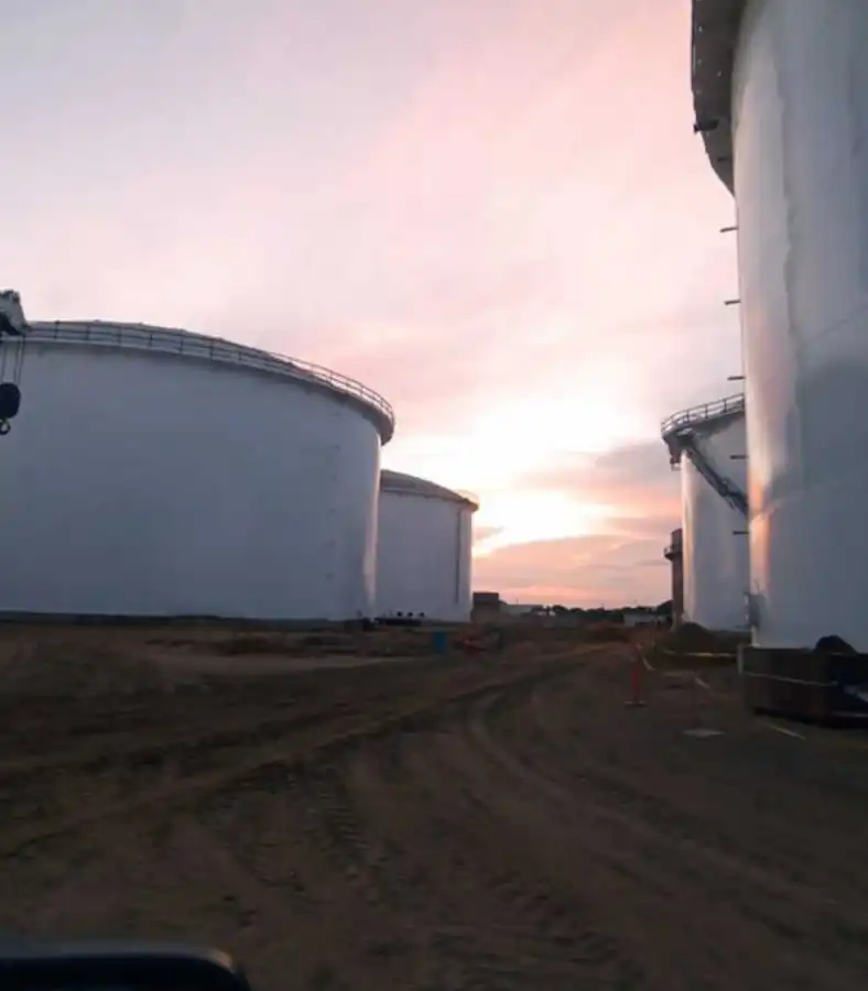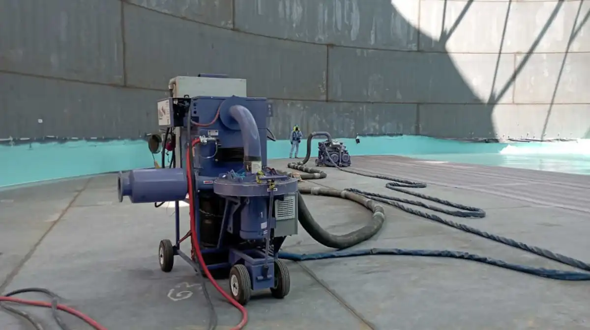 Limpieza y preparación de superficies de la pared exterior y fondo para seis tanques de 150.000 barriles y dos tanques de 100.000 barriles.