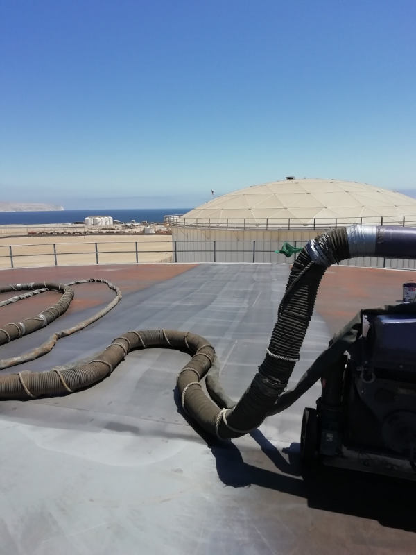 Blasting Experts sigue completando proyectos exitosos de preparación de superficies en Latino América, en esta ocasión con el uso de la Tecnología FasterBlaster durante el mantenimiento de dos tanques de almacenamiento de la Terminal Copec en Mejillones Chile. Promedio de rendimiento diario 300m2 (Techo, Paredes y Fondo) con limpieza SSPC-SP5 Metal Blanco y el uso de granalla metálica Ervin Industries USA.